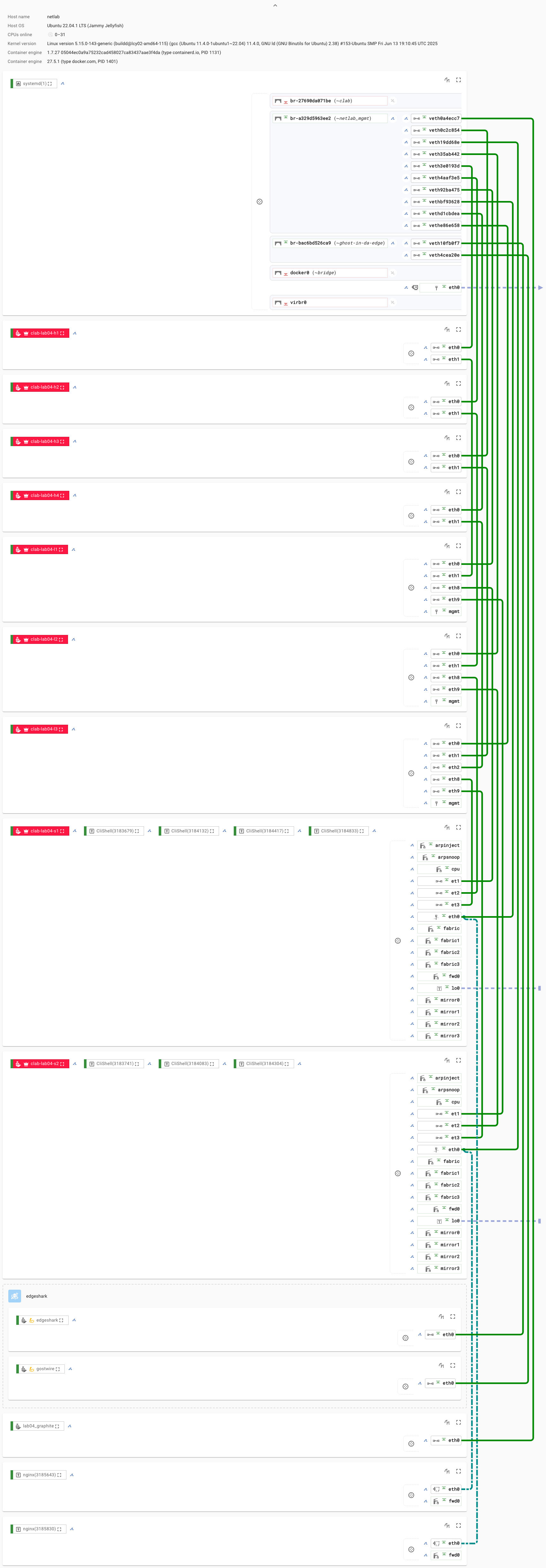 While digging through the docs, I also came across EdgeShark — a built-in tool that allows you to Capture traffic,  Inspect routing information, Monitor links directly from Netlab instances.